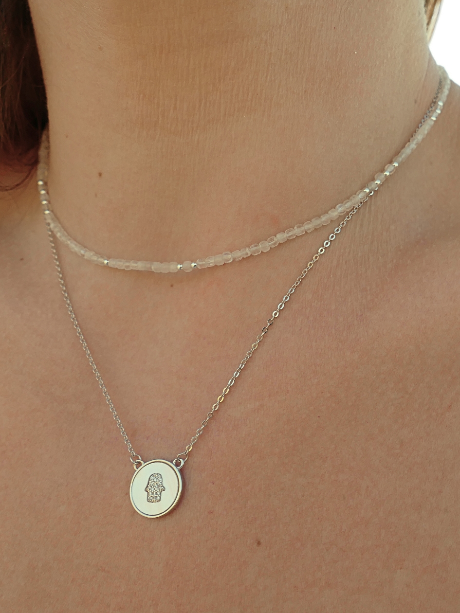 שרשרת צ'וקר עבודת יד מאבני חן נבחרים וחרוזי כסף 925